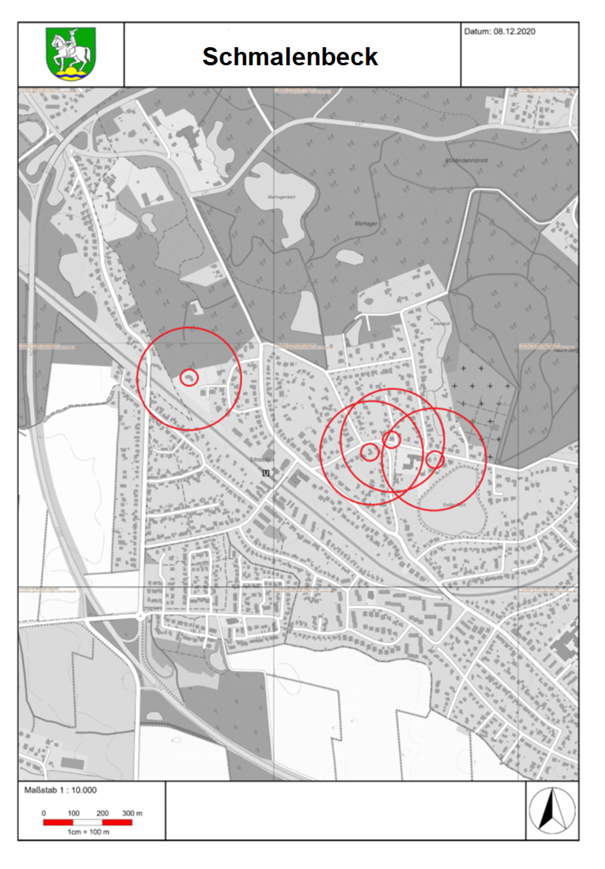 Über das vom 02.01. bis 30.12. bestehende Abbrennverbot hinaus, dürfen im Gebiet der Gemeinde Großhansdorf im Zeitraum vom 31.12.2025 bis zum 01.01.2026 pyrotechnische Gegenstände der Kategorie F2 in einem Umkreis von 180 m um folgende brandgefährdeten Gebäude nicht abgebrannt werden:
